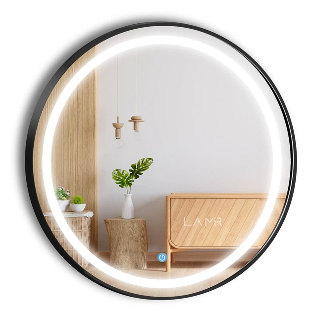 Дзеркало з LED подсветкой лица кругле в чорній рамі ПВХ 80 на 80 см, с сенсором дотику, модель Amica La Mir (6101167818080)