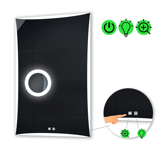 Прямокутне дзеркало з LED підсвіткою 80 на 100 см, з двома сенсорами та лінзою з підсвіткою, модель Amado La Mir (Amado146/)