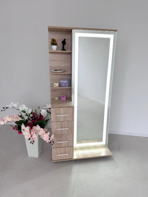 Дзеркало для макіяжу з підсвіткою в повний зріст з шухлядами та поличками 187x100 Дуб Сонома