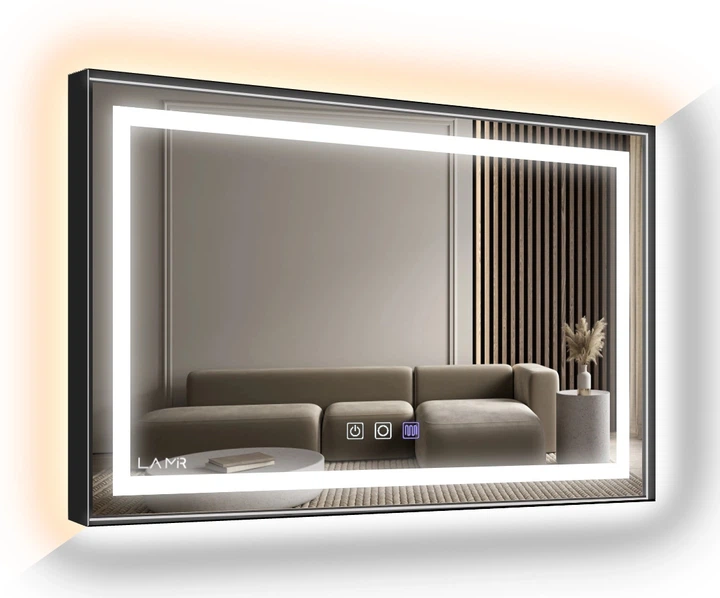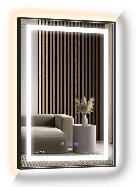 Дзеркало з динамічною LED підсвіткою прямокутне в чорній рамі ПВХ 60 на 80 см, три сенсора та підігрів дзеркала, модель Karn