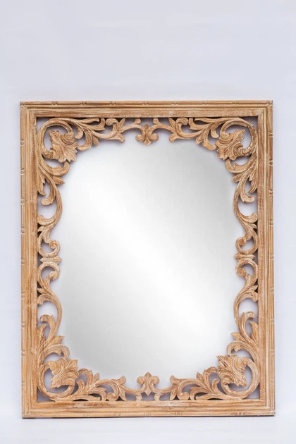 Дзеркало в дерев'яній різьбленій рамі з тику Альтея 80х100 см Бежеве (71 001)