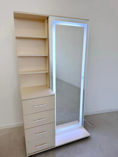 Дзеркало для макіяжу з підсвіткою в повний зріст з шухлядами та поличками 187x80 Крем