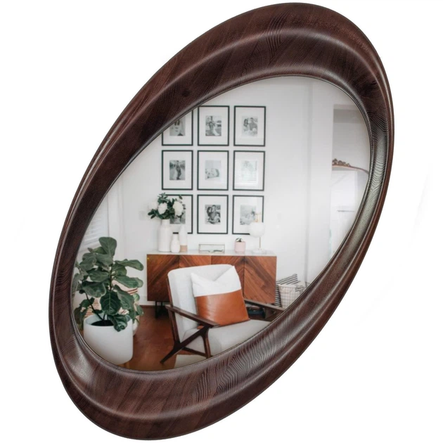 Дзеркало настінне, овальне, дерев'яна рама, зеркало у ванну 99х76.7 см з коричневий