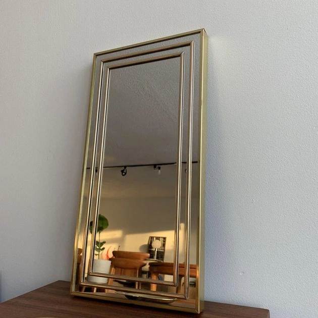 Настільне невелике дзеркало в прямій золоченій металевій рамі 0010504