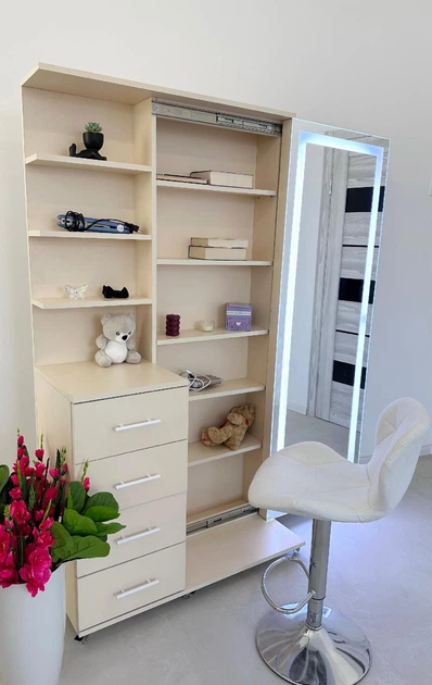 Дзеркало для макіяжу з підсвіткою в повний зріст з шухлядами та поличками 187x90 Крем
