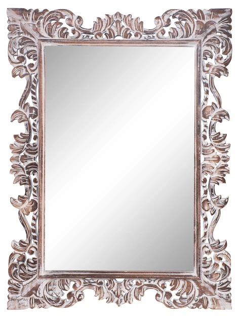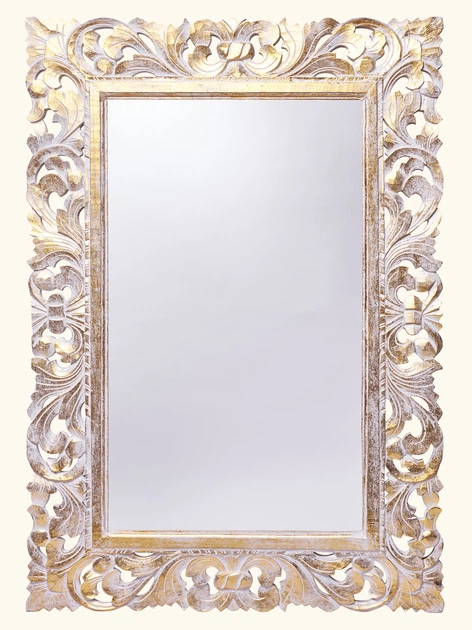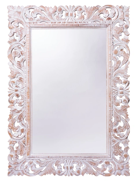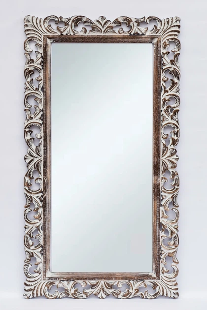 Дзеркало в дерев'яній різьбленій рамі Ажур натуральне з білою патиною 145см*80см (71 2034)