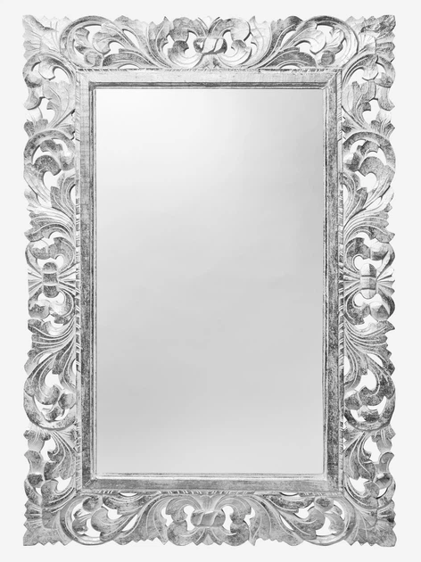 Дзеркало в дерев'яній різьбленій рамі "Ажур" з сріблястою патиною 145см*80см