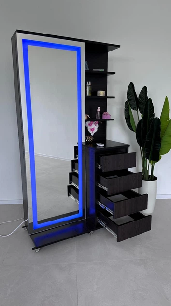 Дзеркало для макіяжу з підсвіткою в повний зріст з шухлядами та поличками 185x100 Венге магія