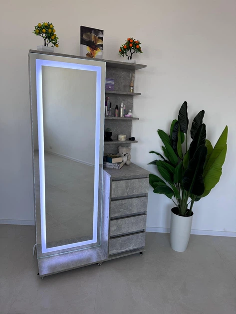 Дзеркало для макіяжу з підсвіткою в повний зріст з шухлядами та поличками 187x100 Індастріал