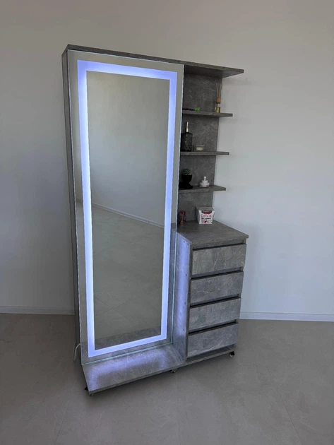 Дзеркало для макіяжу з підсвіткою в повний зріст з шухлядами та поличками 187x110 Індастріал
