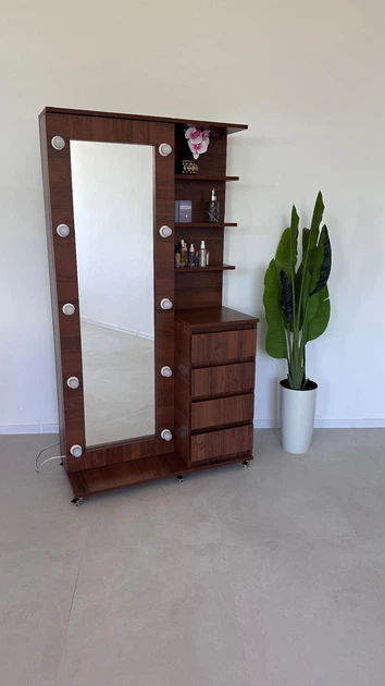 Дзеркало для макіяжу з підсвіткою в повний зріст з шухлядами та поличками 185x110 Горіх еко
