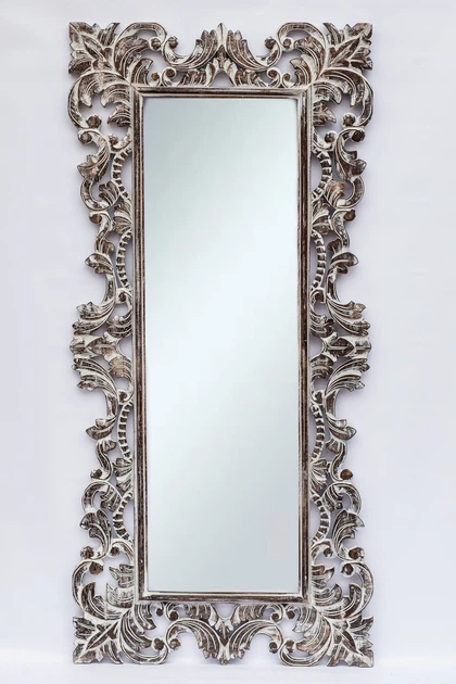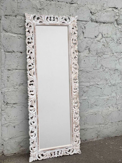 Дзеркало велике настінне в різьбленій дерев'яній рамі білого кольору 180см * 80см