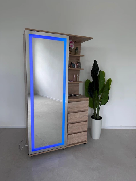 Дзеркало для макіяжу з підсвіткою в повний зріст з шухлядами та поличками 185x100 Дуб сонома