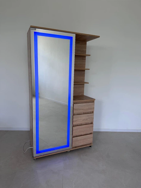 Дзеркало для макіяжу з підсвіткою в повний зріст з шухлядами та поличками 185x120 Дуб сонома