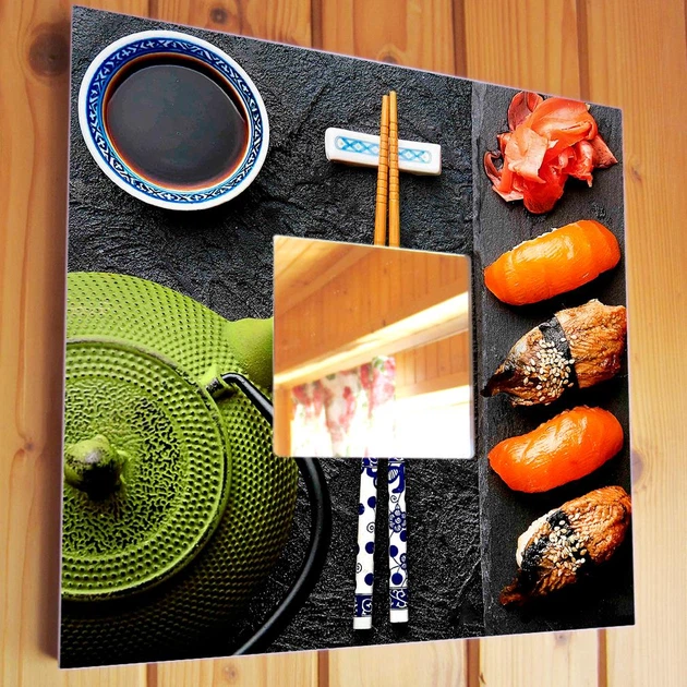 Декоративне дзеркало "Суші і чайник" декор подарунок із зображенням японської їжі, прикраса декор кухні, кафе, бару, рестора