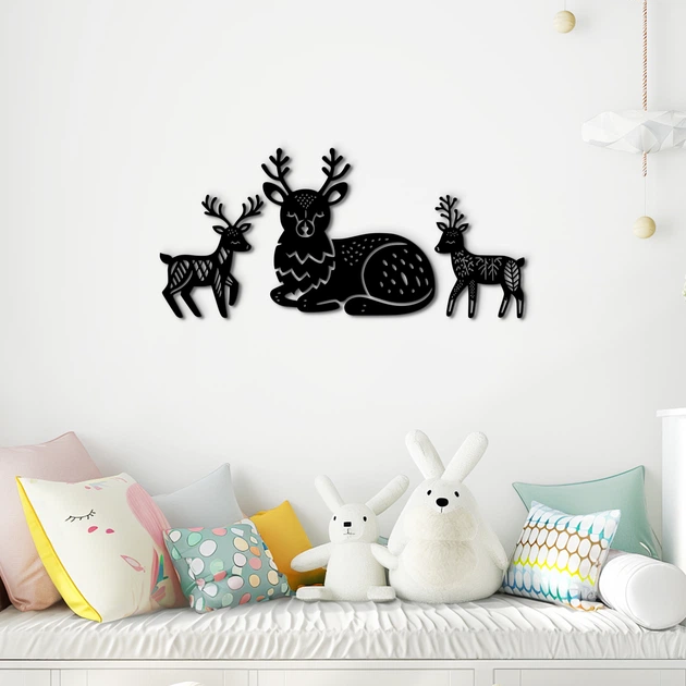 Декоративне панно з дерева Woodyard настінний декор для дому Мама і малята у лісі картина лофт 50x110 см (17020csBlack20 )