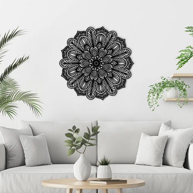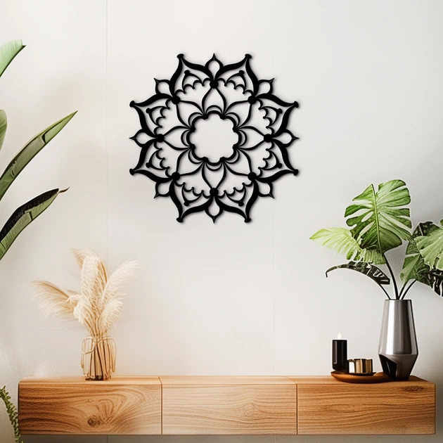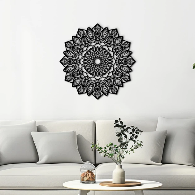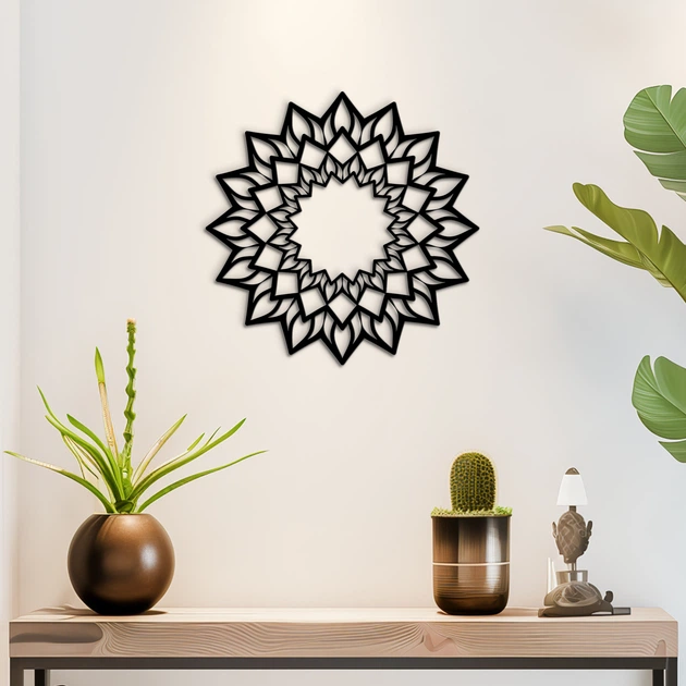 Дерев'яний декор для дому Woodyard чорна картина на стіну Елегантна мандала декоративне панно 70x70 см (0366csBlack28 )
