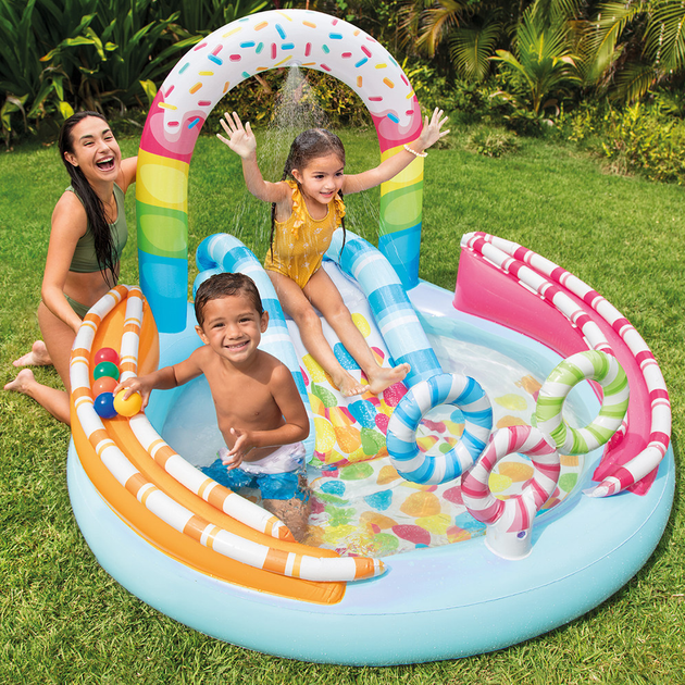 Дитячий надувний ігровий центр Candy Fun 170168122 см — гірка, фонтан, кільця, басейн