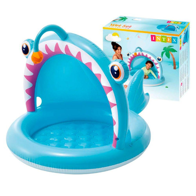 Басейн дитячий надувний Риба 127-102-86см м'яке надувне дно з навісом Bestway, 58419