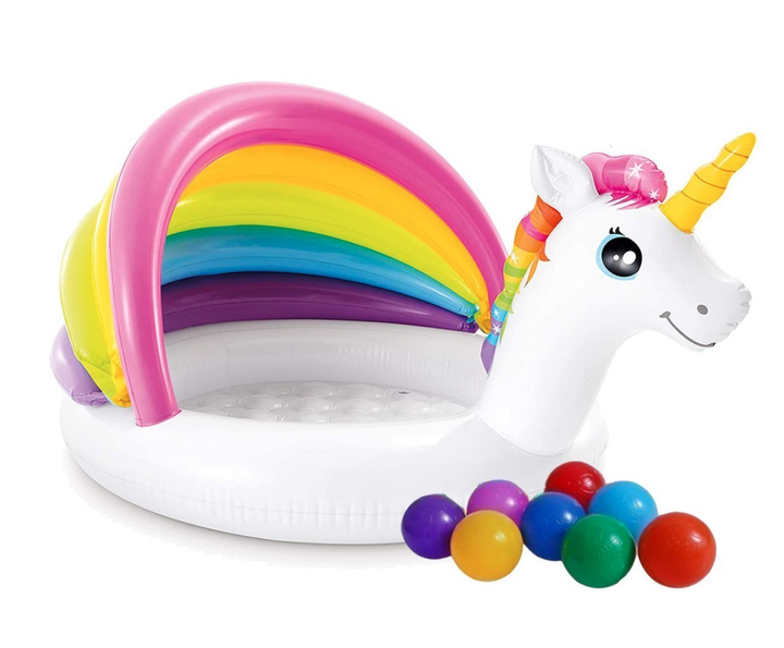 Надувний басейн дитячий Intex Єдиноріг 45 л з навісом 127х102х69 см вініл з кульками Білий (IP-173316)
