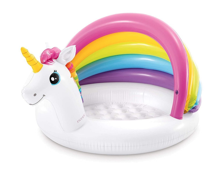 Дитячий басейн з навісом та надувним дном 102х102 см, Intex "Єдиноріг" рожевий