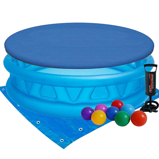 Надувний дитячий басейн Intex Літаюча тарілка вініловий з вбудованим зливним клапаном насосом насосом підстилкою тентом і ку