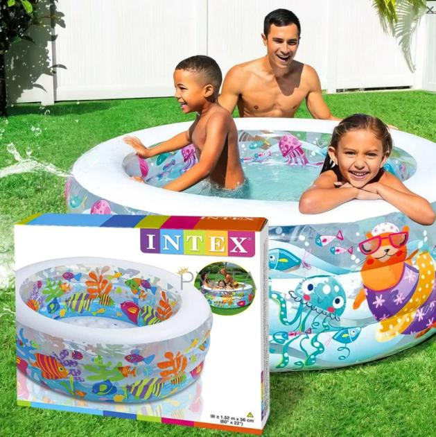 Дитячий сімейний басейн надувний "Акваріум" круглий з надувним дном для дорослих і дітей від 3 років для відпочинку на вулиц