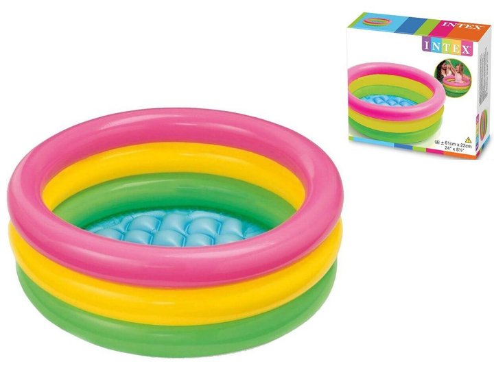 Дитячий надувний басейн 61х22см з надувним дном Intex Веселка