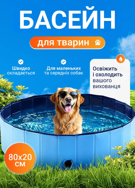 Складний басейн для собак і котів 8020 см — для купання вдома або на вулиці