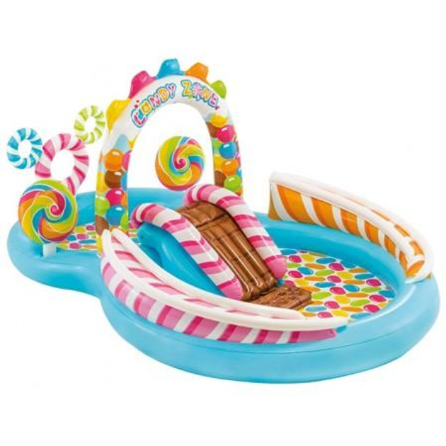 Дитячий круглий наливний басейн Intex Водний мир 3 в 1 складний надувний ігровий центр Інтекс каркасний ігровий комплекс для
