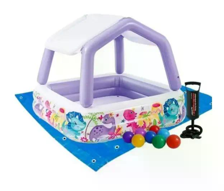 Дитячий надувний басейн з навісом Intex 57470-2 "Акваріум" у комплекті кульки 10 штук підстилка та насос