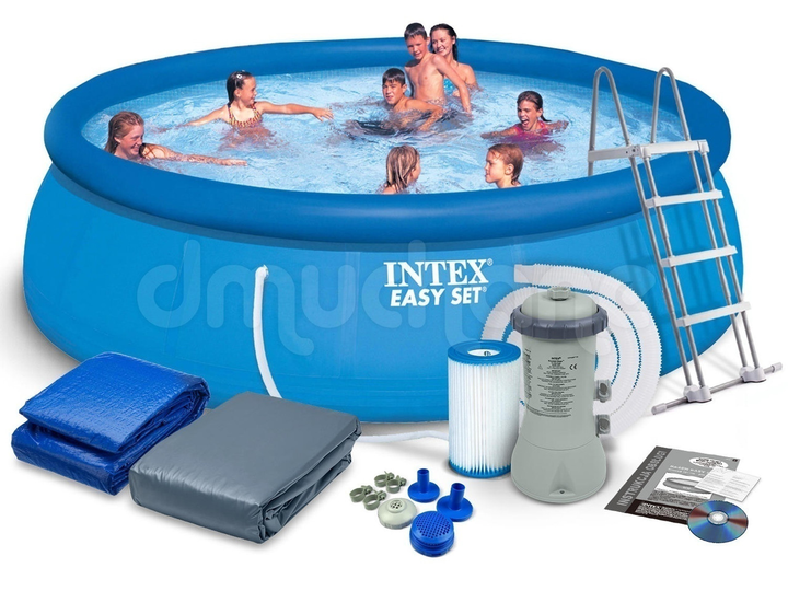 Надувний басейн із насосом і драбиною Інтенекс