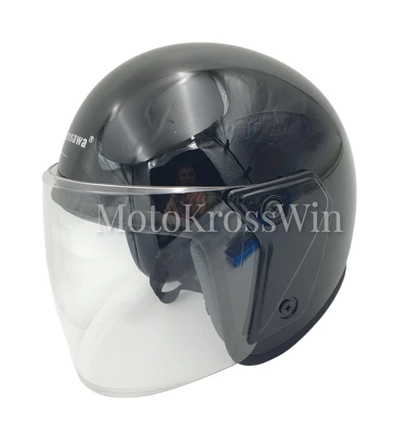 Мото шолом р.M-L (57-59см) Kurosawa відкритий для скутера та мотоцикла, літній, чорний глянець