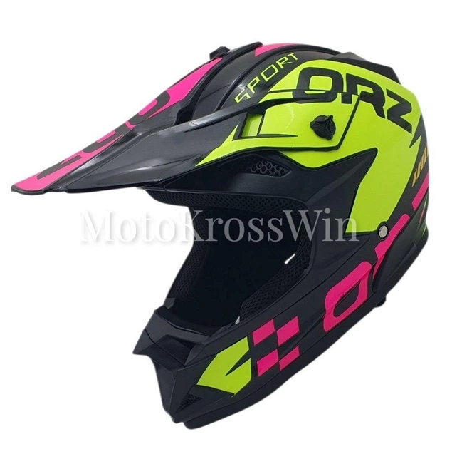 Шолом кросовий ORZ рожевий-салатовий для мотоцикла та пітбайка, р.SX-L, р.S (55-56см)