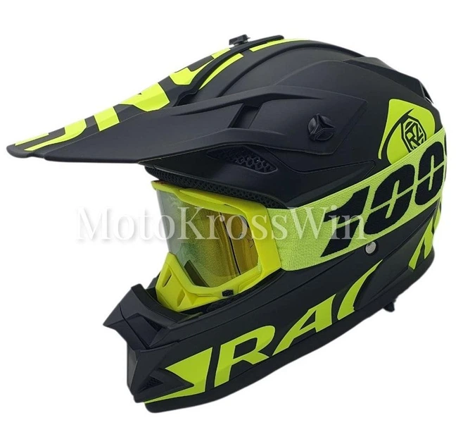 Шолом кросовий ORZ з окулярами чорно-салатовий матовий для мотоцикла та пітбайка, р.SX-М, р.М (57-58см)