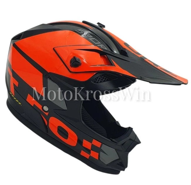 Шолом кросовий ORZ сіро-оранжевий для мотоцикла та пітбайка, р.SX-L, р.S (55-56см)