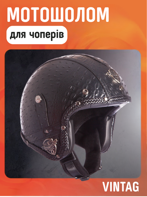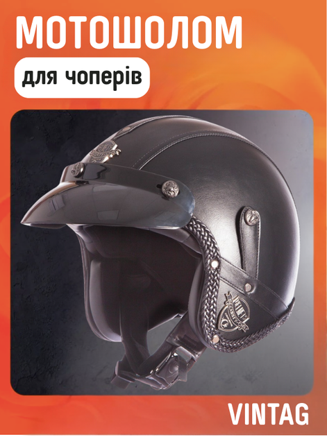 Мотошолом для чопера VINTAGE MS-555-BK (полікарбонат, фіберглас, р-р XL, чорний)