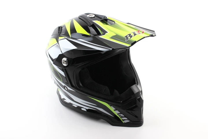 Мотошолом кросовий ендуро АТV BLD 819-7 S (55-56 см) Чорний глянець з салатово-біло-сірим малюнком