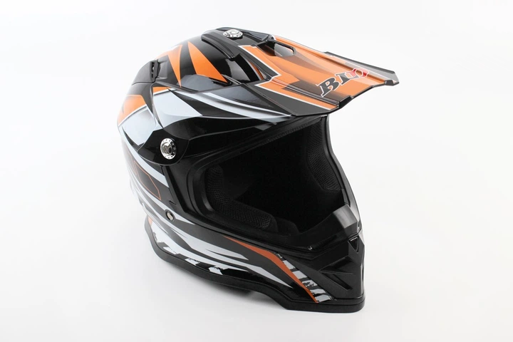 Мотошолом кросовий ендуро АТV BLD 819-7 S (55-56 см) Чорний глянець з оранжево-біло-сірим малюнком