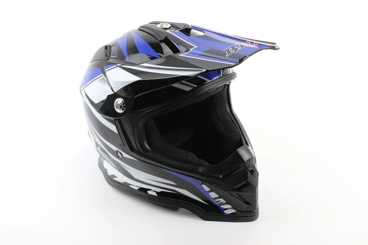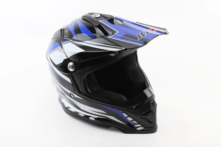 Мотошолом кросовий ендуро АТV BLD 819-7 S (55-56 см) Чорний глянець з синьо-біло-сірим малюнком