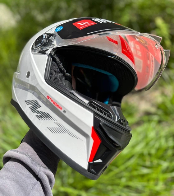Мото шолом інтеграл МТ Helmets STINGER 2 Solid Gloss White білий (Оригінал Іспанія) L + подарунок: чохол для зберігання