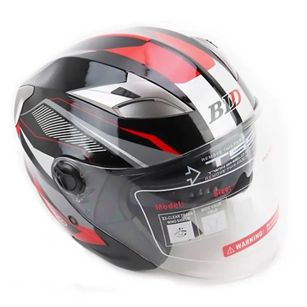Мотошолом BLD 708 М (57-58 см) Чорний глянець відкритий+відкидні окуляри