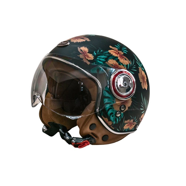 Мотошолом відкритий Beon B-110B FLOWER MATT BLACK/FLOWER (матовий чорний/квіти), розмір XL