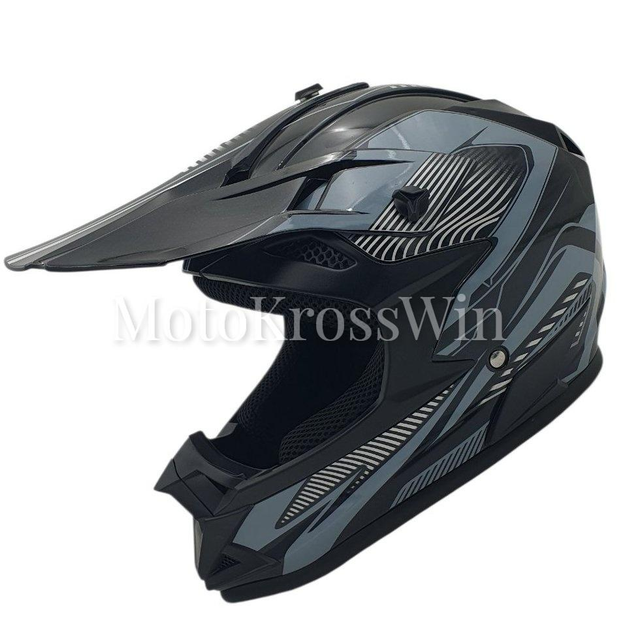 Шолом кросовий ORZ чорно-сірий для мотоцикла та пітбайка, р.XS-L, р.S (55-56см)