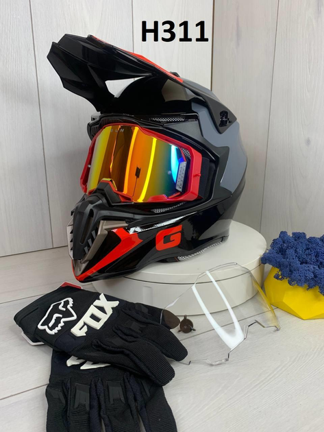 Мотошолом ендуро H311S для мотокросу та квадроциклу + КОМПЛЕКТ: окуляри 100 та рукавиці FOX