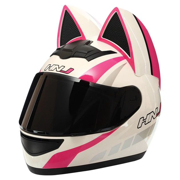 Мотошолом інтеграл (full face) Мото Кото з вушками NITRINOS NEKO HNJ M-9412 розмір L білий-рожевий
