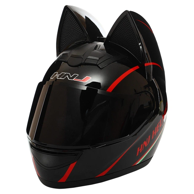 Мотошолом інтеграл (full face) Мото Кото з вушками NITRINOS NEKO HNJ M-9412 ХL (60-62) Чорний/Червоний/Білий
