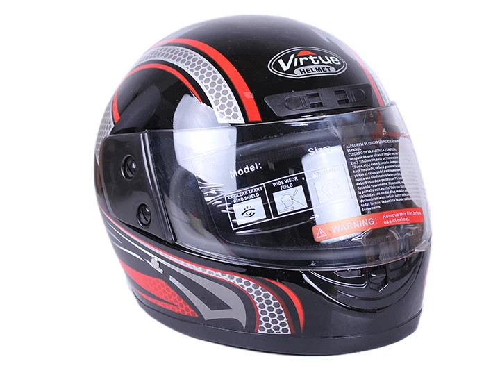 Шолом-каска мотоциклетний VIRTUE MD-513-1, чорний глянсовий із прозорим склом, size L