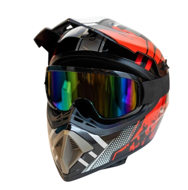 Мотошолом кросовий ендуро з окулярами розмір М червоний