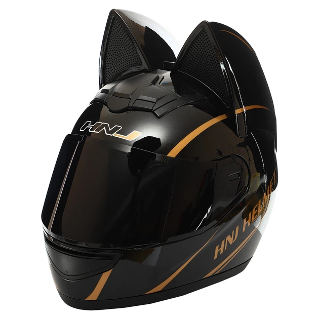 Мотошолом інтеграл (full face) Мото Кото з вушками NITRINOS NEKO HNJ M-9412 розмір L чорний-золотий
